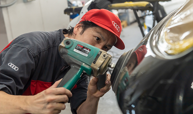 クオリティの高さが自慢のAudiだけに、サービスに対するお客さまの期待も高い。Audi専任ならではのボディペイントなら、最新の設備や材料、そして、経験豊富なスタッフが誇る匠の技により、あなたの期待にきっと応えてくれるだろう。