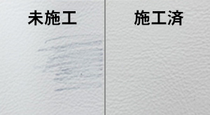 ファンデーションや日焼け止め等の化粧品の付着によって残る落としにくい白ボケの跡もインテリア・ガードによって簡単に除去できるようになります。