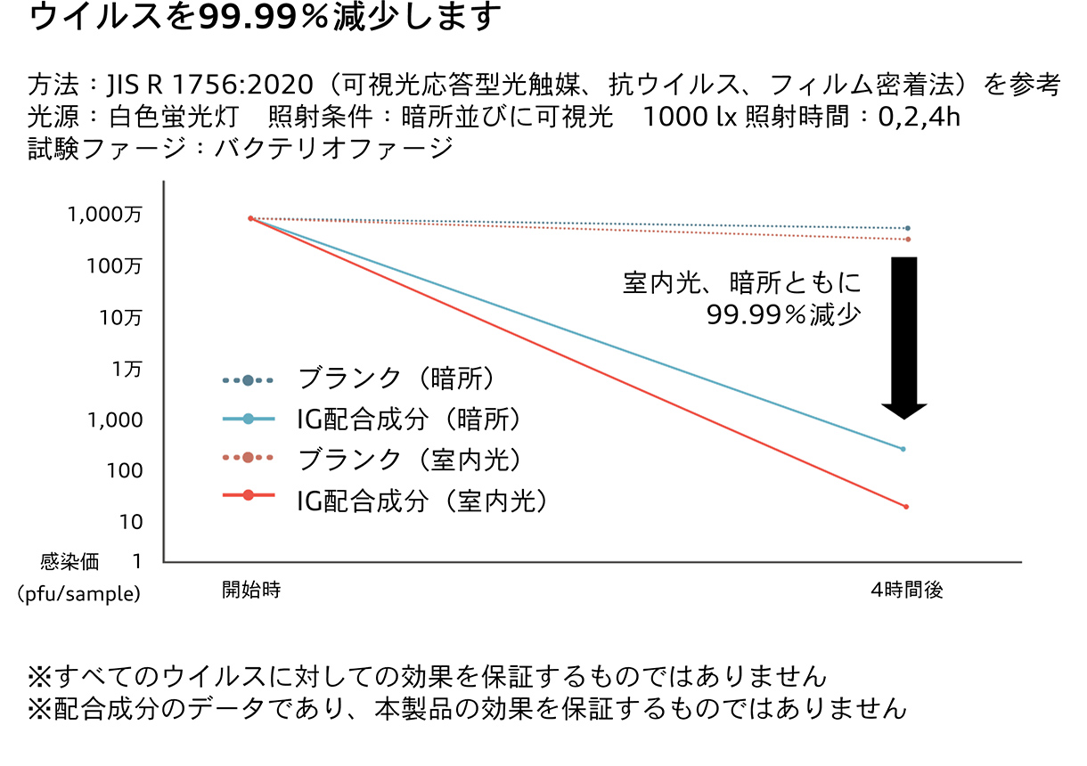 エンベロープウイルスやノンエンベロープウイルスにも効果が確認されております。