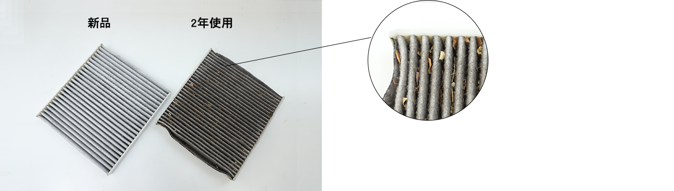 使い続けることでフィルターの目が詰まってしまいエアコン効率が下がるため、定期的な交換をおすすめしています。