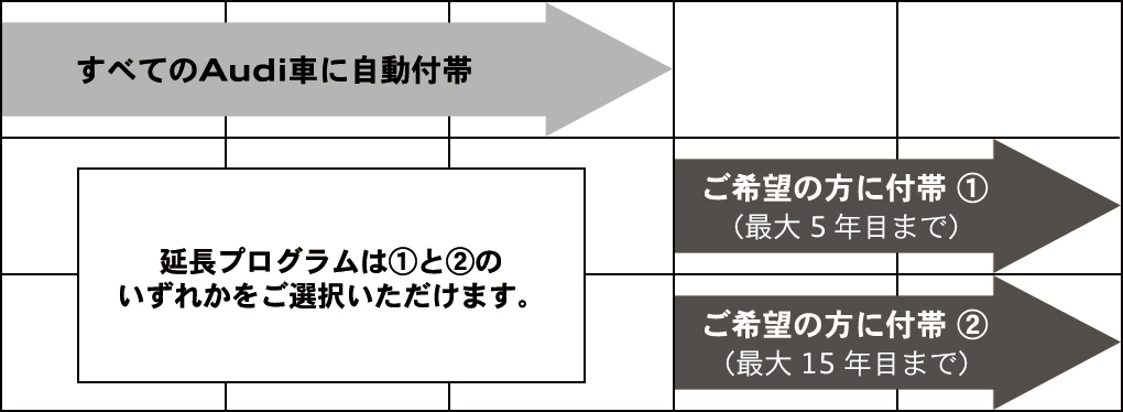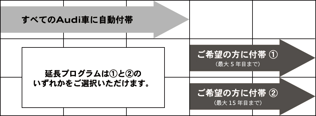 延長 点検・メンテナンス① 「 Audi Freeway Plus.」 「 Audi Freeway Plan 」を5年目まで延長。  |