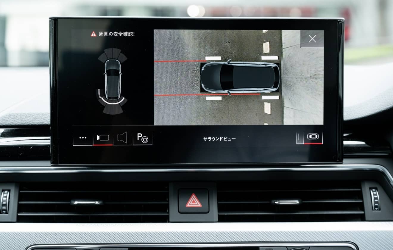 Audiには4つのカメラから得た映像を合成して、あたかも上空から眺めているような映像を表示するサラウンドビューカメラを搭載しています。側面や後部など気になる箇所を注目して映すこともできるので、狭い場所での駐車や縦列駐車時も安心です。