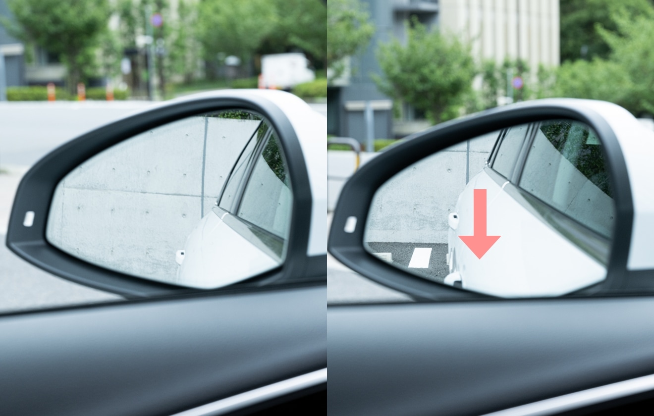 バックをする際、サイドミラーを覗きこまないと地面が見えず困ったことはないでしょうか。Audiはバックギアへ入れるのと同時にサイドミラーの角度が自動変化。バックに最適な視界を確保してくれます。