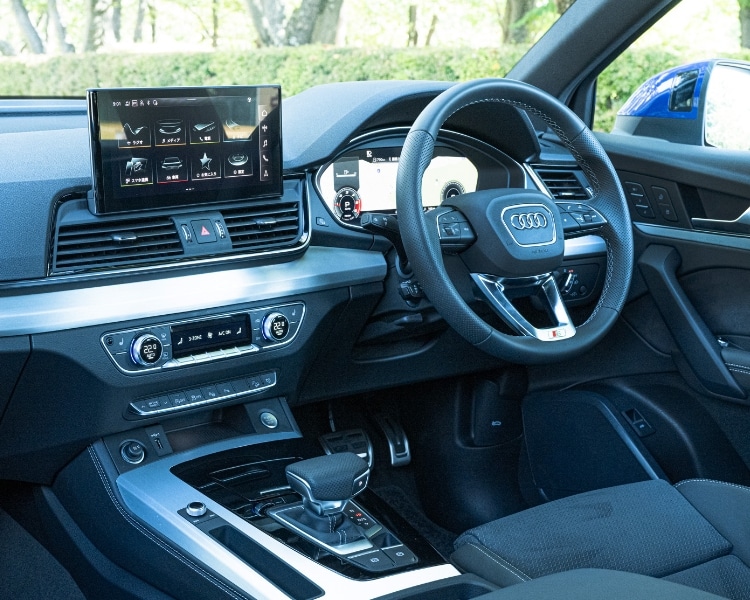 Audiは視界を確保するためフレームが細くデザインされていますが、さらに目線(アイポイント)が高く設定されているSUVタイプならよりドライブ時の快適さを感じていただけます。