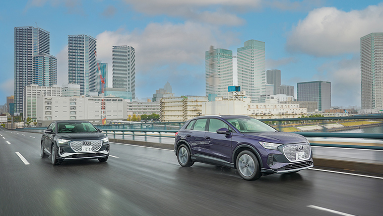 Audi Q4 e-tronは、高度に計算されたエアロダイナミクスで全身を磨き上げるとともに、エネルギー回生システムで走りの効率性を向上。613km*¹の一充電走行距離を実現しています。