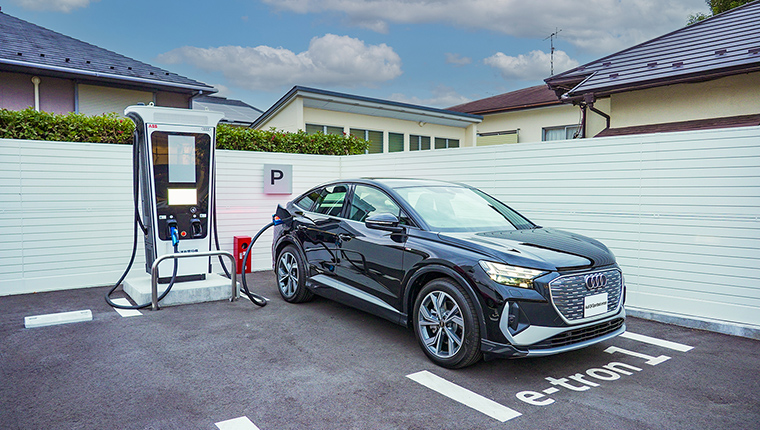 Audi Q4 e-tronは200Vの普通充電に加えて日本全国に数多く設置されているCHAdeMO規格急速充電器での充電が可能です。