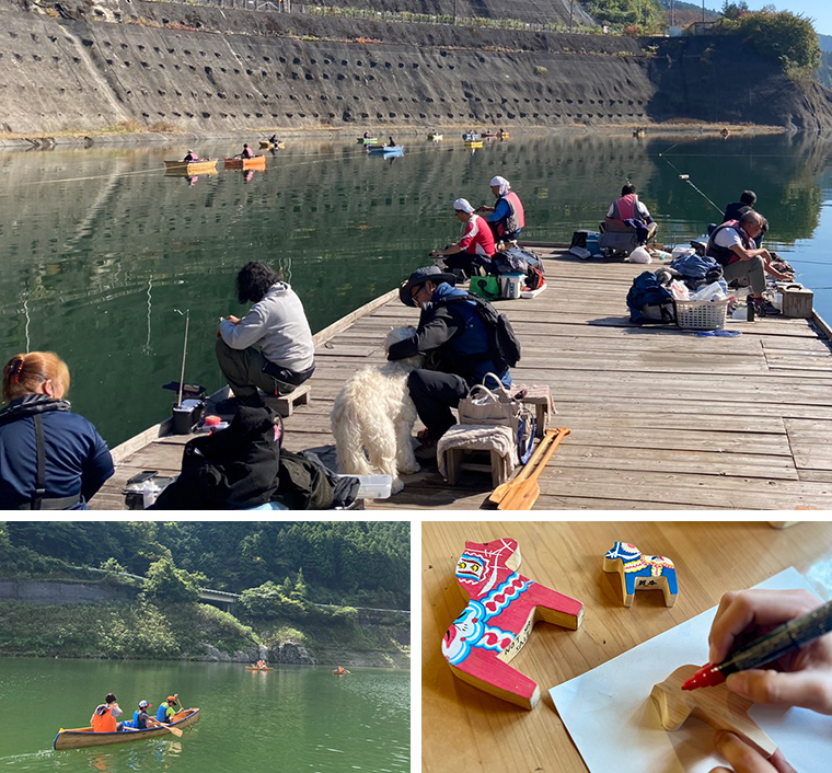 名栗カヌー工房では、大自然に囲まれた名栗湖の湖畔で、地元の木材”西川材”を活用した手作りカヌー体験やククサ作りなど、四季折々のアクティビティを愉しむことができます。