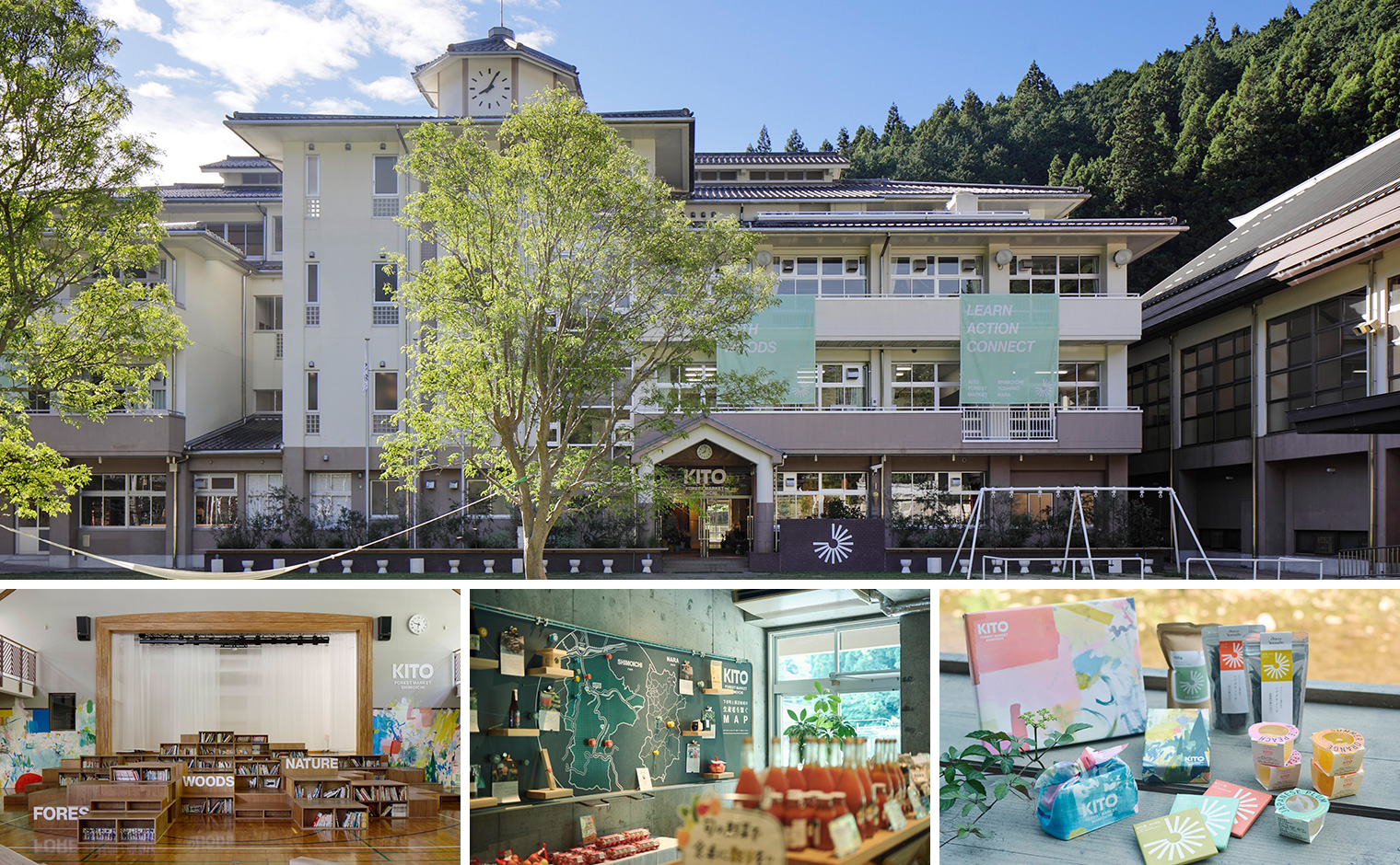 奈良県のほぼ中央に位置する下市町にあるKITO FOREST MARKET SHIMOICHIは、ショップ、カフェレストラン、キッズスペース、マルシェなどを備えた体験型複合施設です。ここでは下市町の豊かな自然や特産品を活かした、様々な体験をお楽しみいただけます。山々と清流に囲まれ、魅力的な食材と、古くから受け継がれてきた奥行きのある文化を持つ下市町。KITOは、「もうひと手間を、あそぶ」をコンセプトに奈良県下市町の廃校になった小学校を木に囲まれた温かい複合施設にリノベーションしました。
