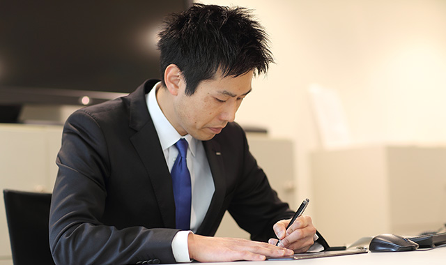 ご来場、ご試乗、ご購入いただいたお客様などに、お礼の手紙をお送りしていることでしょうか。字は体を表すともいわれますので、特にお名前は思いを込めて丁寧に書くことを心がけています。はじめたきっかけは、ご購入いただいたお客様へお礼の連絡を差し上げるときに、お電話だけというのも素っ気ないと考えたからでした。後日、お客様から手紙へのお礼の言葉をいただいたり、字がきれいですねと言われたりすると、やっぱりやってよかったなと思います。