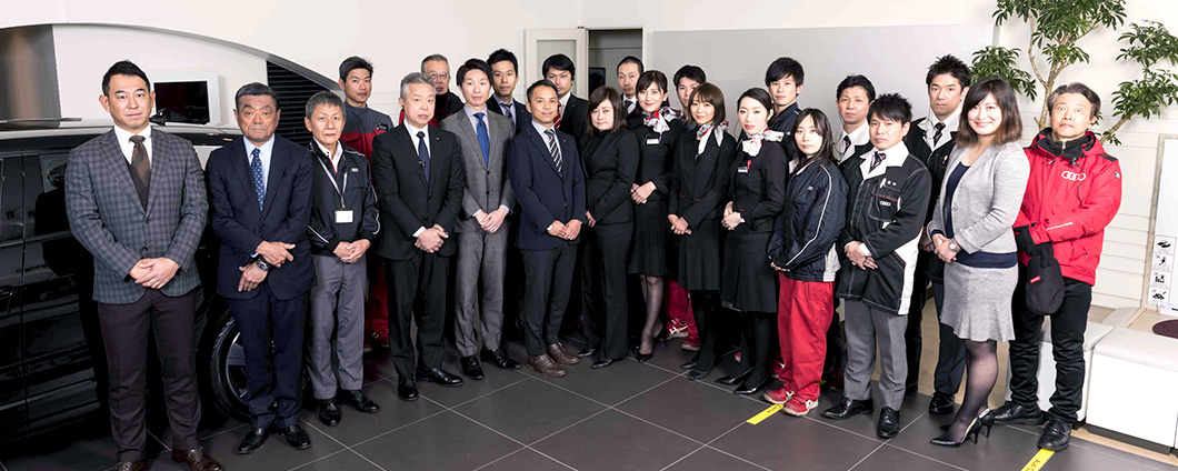 入社以来ずっと、もっともっと多くの方にAudiの魅力を知っていただき、乗ってもらいたいと考えてきました。とはいえ、自分一人の力では限界がありますし、年齢的にもそろそろ人生の折り返し点に差し掛かっています。そこで、今後は後進を育てることにも力を入れていきたいと考えています。後輩たちもそれぞれにスキルを磨いていますが、全員に共通して話しているのは「お客様には、元気よくはきはきとお話しする」ことです。これが接客の基本だと思っています。また、私自身はマネジメント力を養い、店舗のスタッフのチーム力を高めてお客様と接していきたいと考えています。