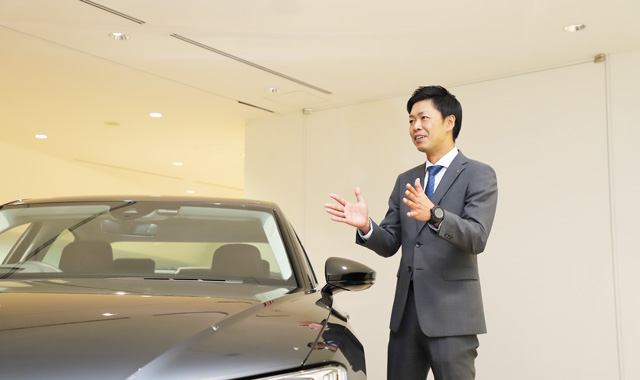 Audi堺の9名のセールススタッフをフォローアップする仕事です。セールスそれぞれの行動やお客様との商談の進捗を把握して、場合によってはアドバイスをしたり、作成された見積もりに漏れがないかをチェックしたりと、スマートに接客が行えるようにサポートしています。本来はもう少し指導的な立場なのですが、指示が多かったり、販売目標ばかりを意識させたりしても彼らはやりにくいでしょうから、なるべく自分たちでアプローチ方法を考えさせ、行動させるようにしています。それでうまくできなかったら、別のやり方を提示するなどしてフォローしています。