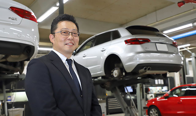 アフターセールスは、点検や修理などを中心に、弊社でクルマを購入されたお客様のカーライフをトータルでサポートする部門。私はそこを統括する立場として、これら一連の業務に関する予算の管理や企画の立案、実施などを行っています。