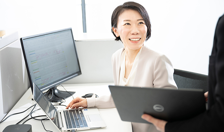 複数の企業で人事畑を歩み、積み重ねてきた知識とノウハウでHRBP担当の女性管理職として活躍する酒井。お客様の信頼を得るため、まずは社員に信頼される組織づくりが大切だという彼女に、仕事の内容やモットーなどについてたずねました。