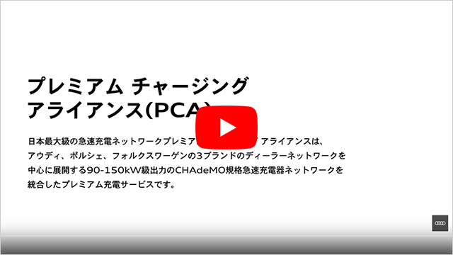 「プレミアムチャージングアライアンス(PCA) 」はアウディ、ポルシェ、フォルクスワーゲンの3ブランドのディーラーネットワークを中心に展開する90-150kW級出力のCHAdeMO規格急速充電器ネットワークを統合したプレミアム充電サービスです。