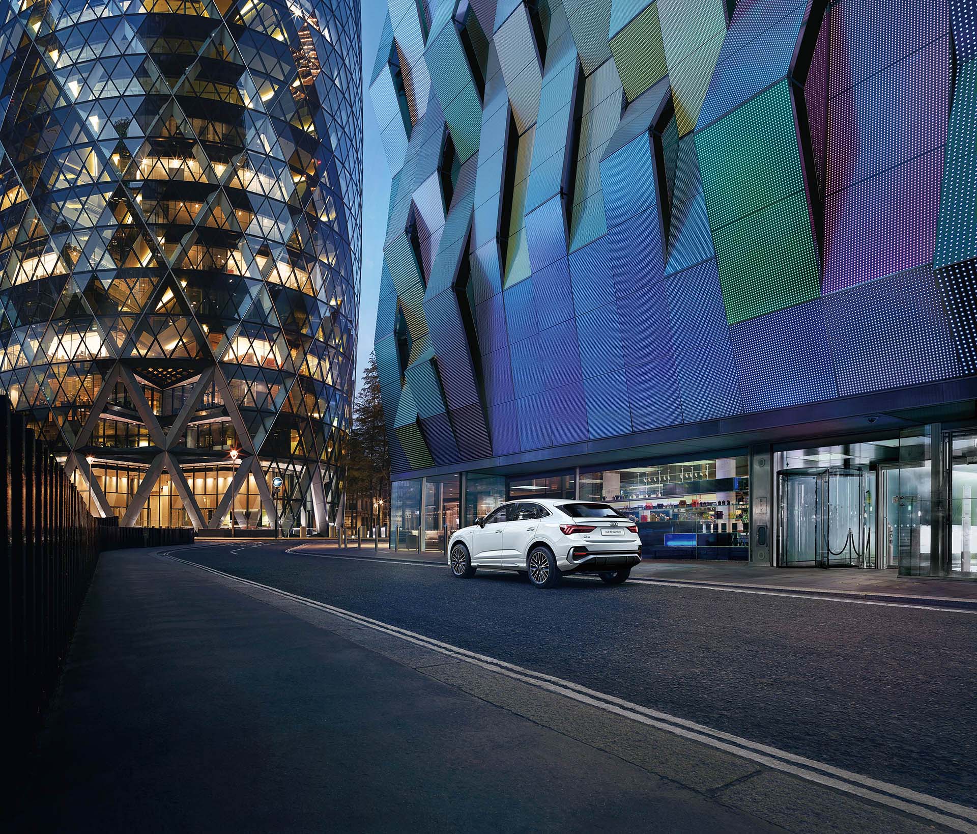 Q3 Sportback独創的なデザインSUVらしい量感のあるボディを主張しながら、スポーティなクーペライクなラインを取り入れるという全く新しい挑戦が、ボリュームのあるマスキュリンな存在感とシャープな躍動感が共存する独創的なデザインを生み出し、あらゆる道をしなやかに走り抜ける姿を想像させます。