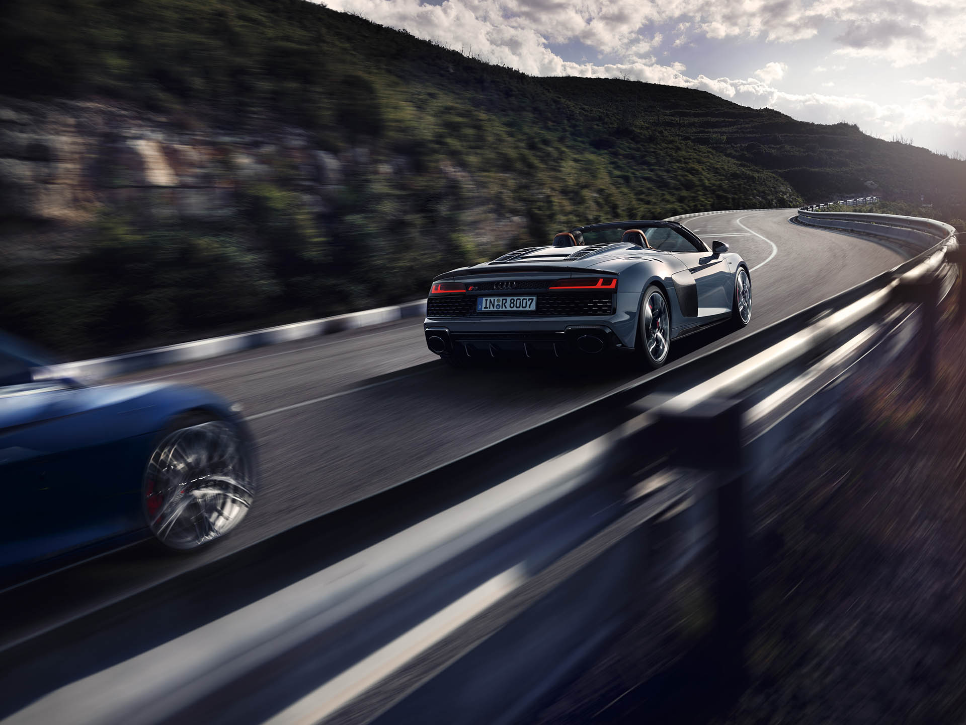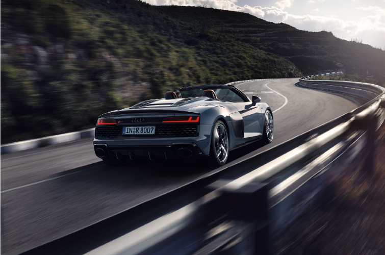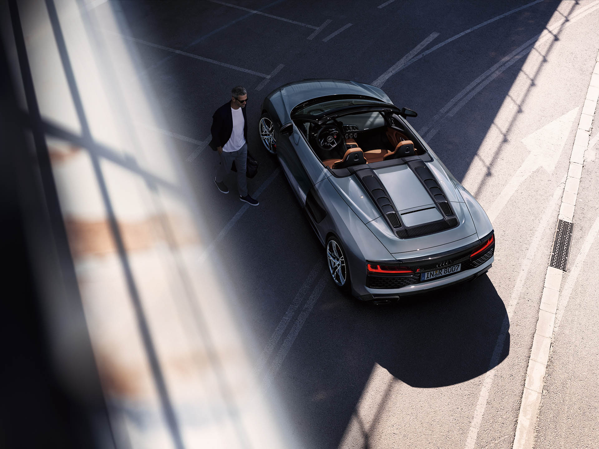 モータースポーツの血統を継ぐ圧倒的パワー、他を置き去りにする俊敏な加速、それらをもっと自由にオープンエアで堪能するために生まれたAudi R8 Spyder V10 performance 5.2 FSI quattro S tronicのシートに身を預ければ、何ものからも解放される時間が始まります。