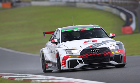フリー走行のほか、富田選手のドライブによるAudi RS3 LMSでのホットラップ(助手席同乗体験)も実施。Audi RS3 LMSは、市販されているハイパフォーマンスコンパクトセダン「Audi RS3セダン」をベースに開発されたツーリングカー選手権「TCRシリーズ」のレギュレーションに準拠するレーシングカーで、日本ではスーパー耐久シリーズに投入されています。市販車の面影を残しながらも、前後のブリスターフェンダーや大型のリヤスポイラーなどによるアグレッシブなスタイルと専用チューンを施したエンジンの豪快なサウンドが見るものを圧倒します。さらにAudi RS3 LMSは、市販車ベースのレーシングカーであるため、自身で愛用されるAudiの優れた基本性能に加え、それをベースに究極のロードカーである「Sモデル」や「RSモデル」を送り出すAudi Sportのクルマつくりの哲学も肌で感じることが出来ます。今回は、路面がウェットということで、レーシングドライバーによる的確な操作とレーシングカーの挙動を助手席で体感できたことに、ご参加いただいた皆様からは喜びの声を多数いただきました。