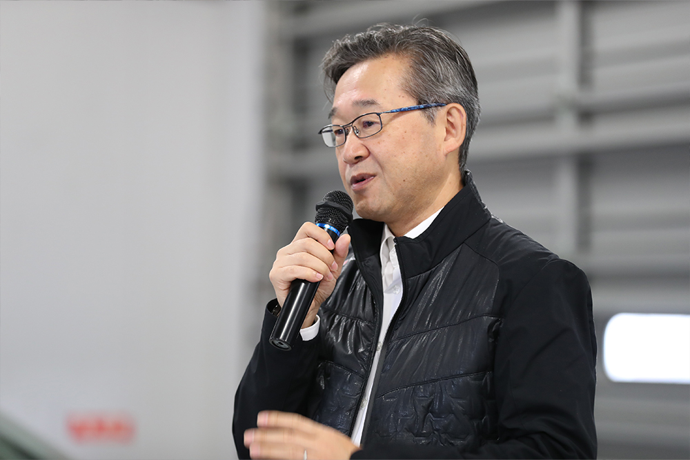イベントの冒頭、ピットで行われた開会式では、今年9月に弊社代表取締役社長に就任したばかりの斎藤 徹が挨拶を行い、各地から参加された皆様をお迎えしました。