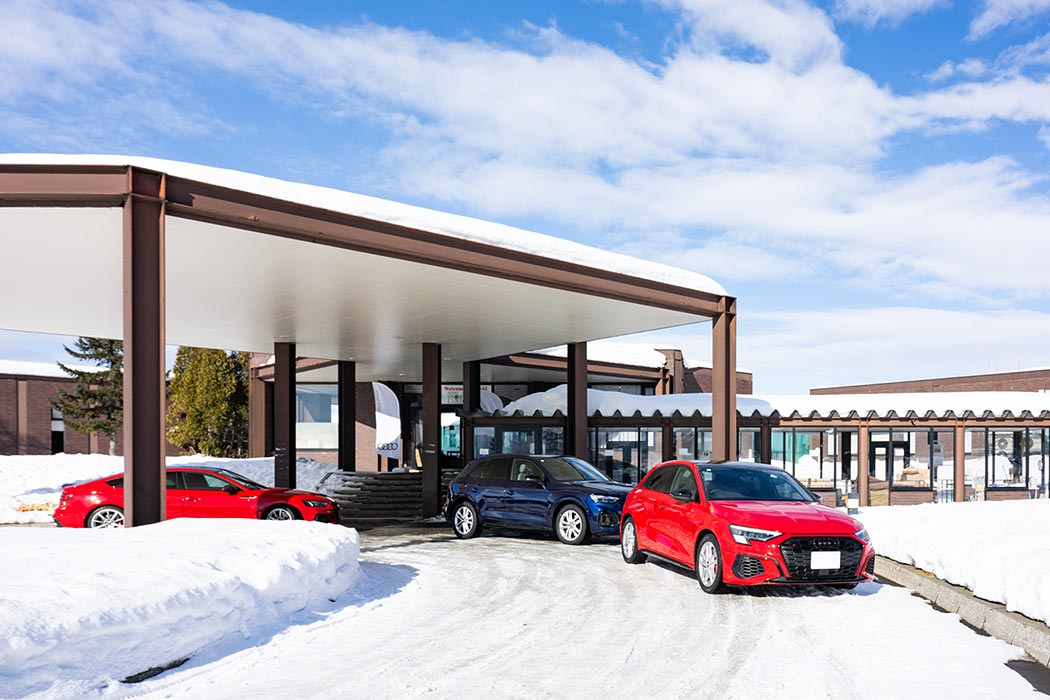 グランドメルキュール札幌大通公園を後にし、チャーターバスでDay2の本会場へ向かいました。HOKKAIDO BIBAI SNOW LANDは美唄市のゴルフ場「ゴルフ5カントリー美唄コース」がスノーアクテビティを楽しめる施設として冬季期間のみ「HOKKAIDO BIBAI SNOWLAND」として営業しています。今回のイベントでは自動車業界初の試みとして特別に会場を貸し切り、雪上をAudiで走行いただけるプログラムをご用意いたしました。