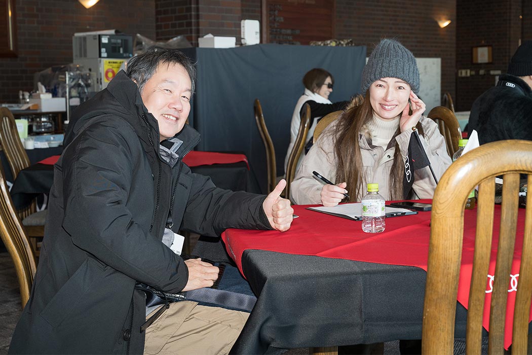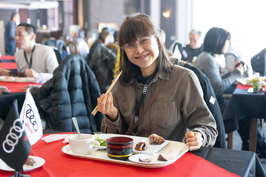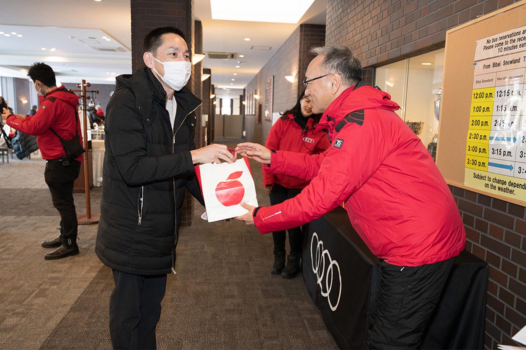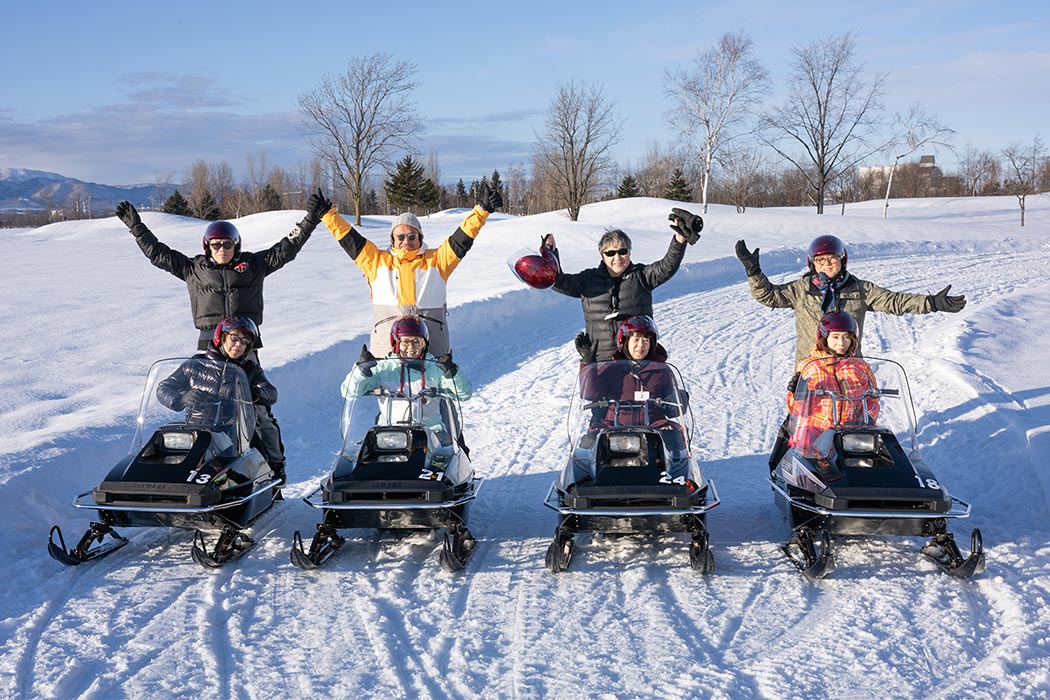 Audiからスノーモービルへ乗り換えていただき、北海道の広大な大地を巡るスノーモービルツアーも体験いただきました。インストラクターが初心者の方にも丁寧に指導し、晴れた冬空の下、グルーミングバーンを疾走する爽快感を味わっていただく北海道ならではの体験に、皆さまからもご好評をいただきました。