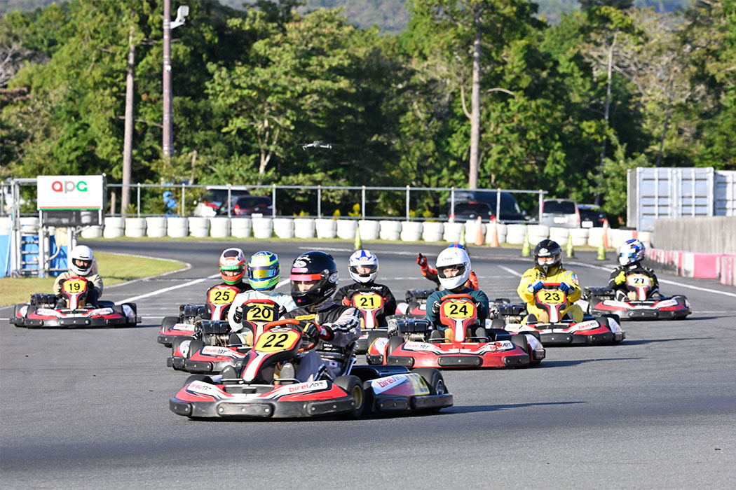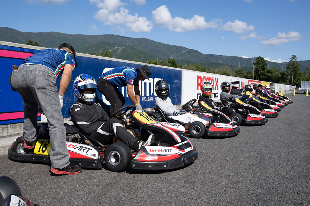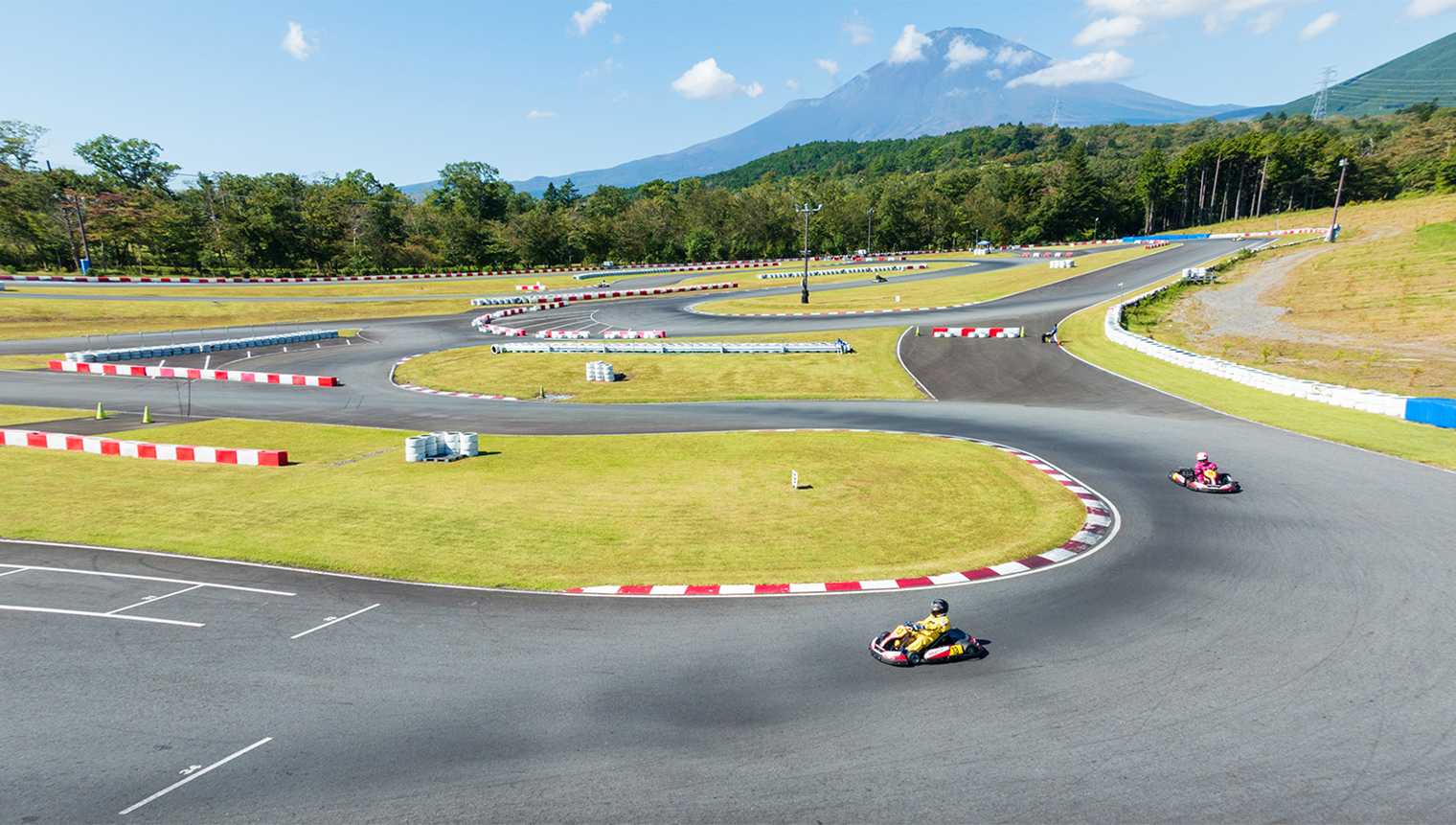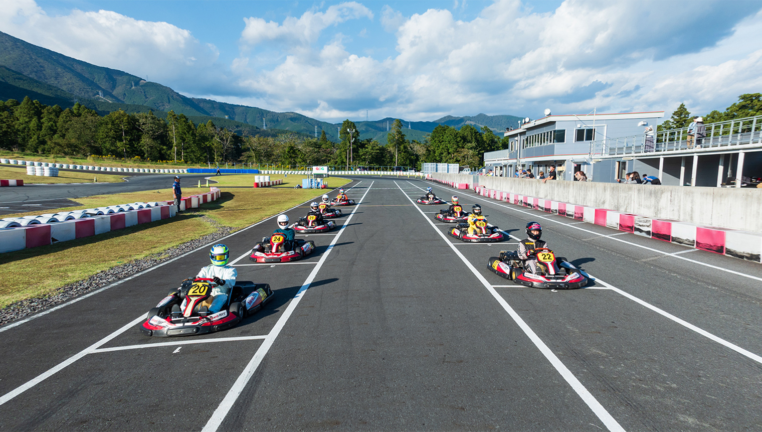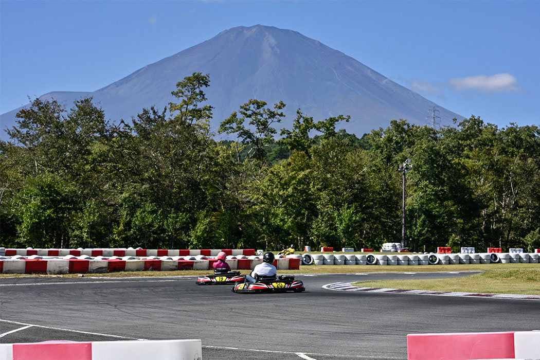 当日は富士山を望むロケーションで全日本選手権も開催されている「オートパラダイス御殿場」に朝9時30分にお集まりいただきました。アップダウンの激しいテクニカルかつハイスピードなコースで、カートならではのハンドリングだけでなく、スムーズに高低差のあるコーナーをクリアするアクセルワークも重要で、様々な展開のレースが日々繰り広げられています。