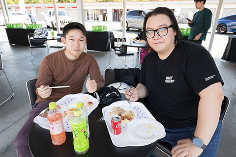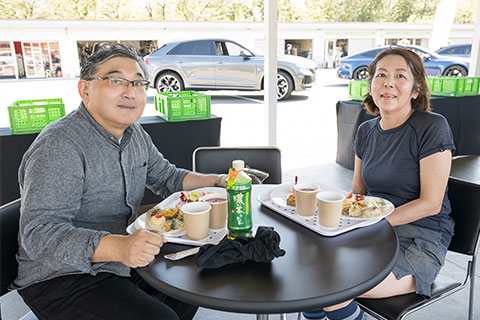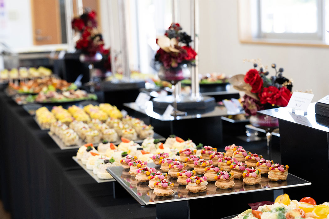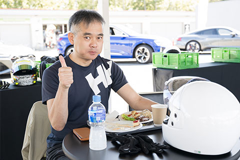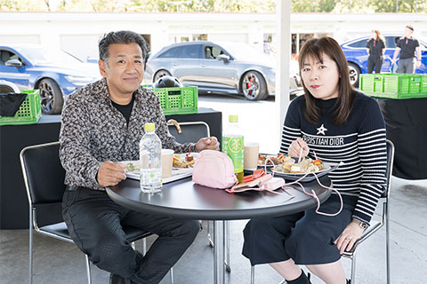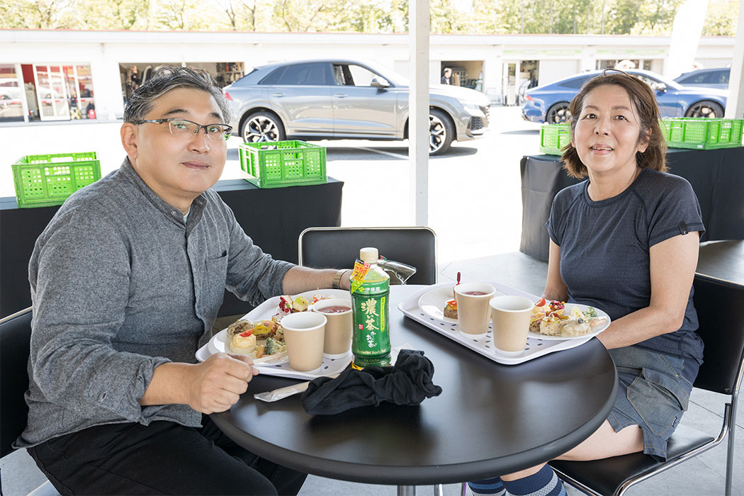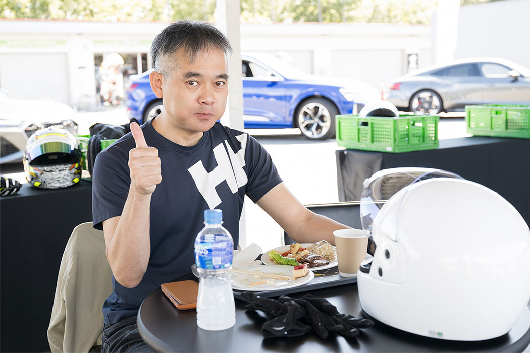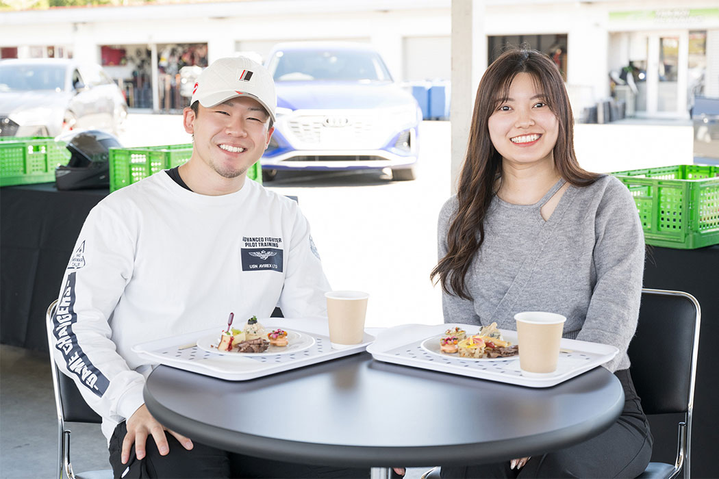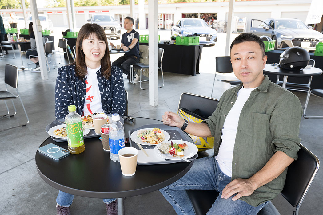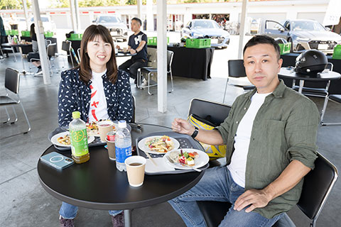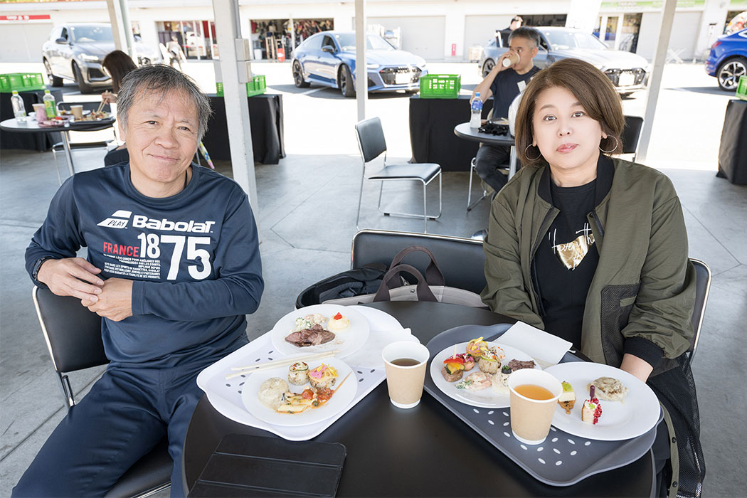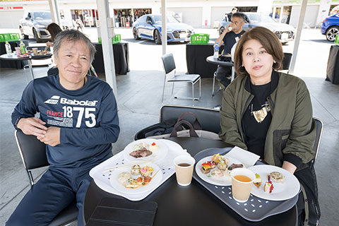 3回目のフリー走行の前に、休憩を挟み、ブッフェスタイルのランチで旬の食材を使用したオリジナルメニューをお召し上がりいただきました。天候にも恵まれ、ピット内でランチをお召し上がりになられる方も多くいらっしゃいました。
