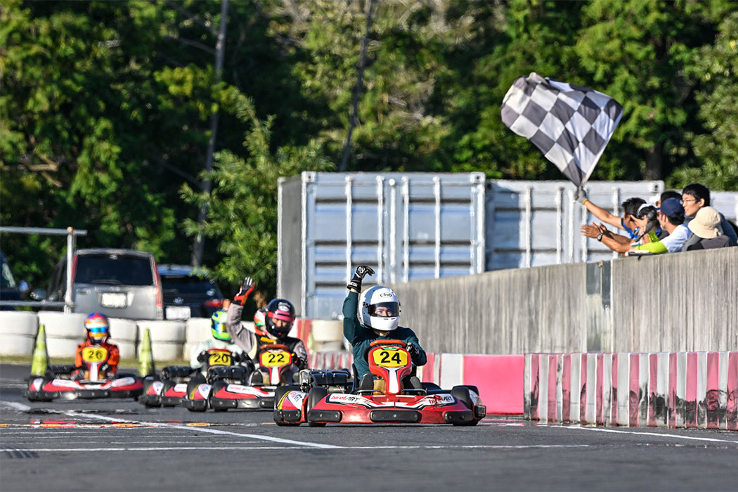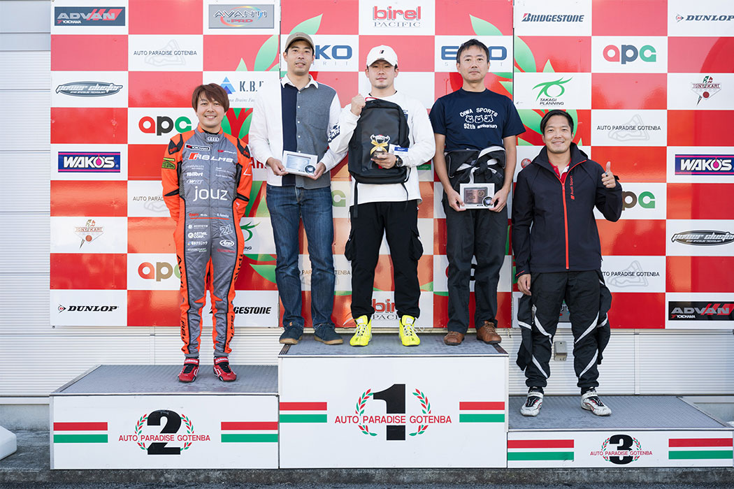 予選・決勝もRSグループ、Sグループ、Aグループと3つのグループに分かれ、実施しました。決勝のスターティンググリッドを決める15分間の予選。路面温度の変化や午前の疲労も出てくる時間帯ではありますが、ご自身の最速タイムを更新される方も多くいらっしゃいました。決勝レースは、コース10周を早く走り切った方が優勝というルールで、ホームストレートに並んでシグナルでスタートするスタンディング形式で行いました。どのグループも白熱した1位争いを繰り広げ、最後まで気の抜けないレースが続きました。インストラクターの2人も決勝に参戦し、プロのスキルを存分に披露し、レースを盛り上げました。