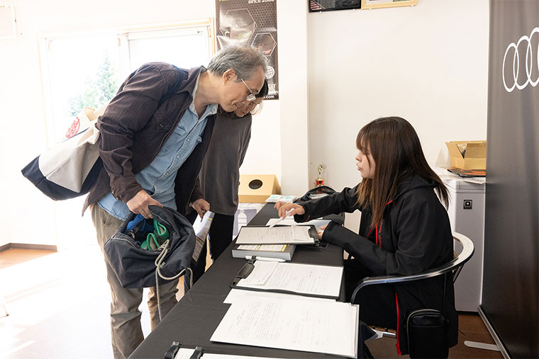 Session2からは本格的なタイム計測がスタート。LAPタイムが目に見えるようになり、走行後はレーシングドライバーに、ドライビングの改善点や理想的な目線の位置など、よりタイムが向上できるようアドバイスを聞かれる方が多くいらっしゃいました。周回を重ねるごとにタイムを縮め、運転の難しいカートを早くも乗りこなす方もいらっしゃいました。