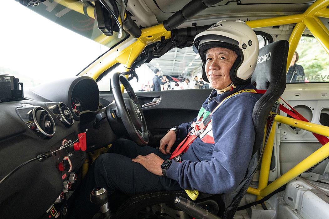 Audi A1 Fun Cup Carは、2024年に富士スピードウェイ・筑波サーキット・スポーツランドSUGOで開催された「Audi A1 Fun Cup」に参戦しているマシンで、市販のAudi A1 1.4TFSIに軽量化やライトチューニング、安全装備の装着など施したレース専用マシン。レースといえば、クラッチ付マニュアルトランスミッションを操る必要のある車両もありますが、Audi A1 Fun Cup Carの車両は、市販車に純正搭載されているS-tronicが使われているため、AT免許でも操作が可能です。シフトに気を取られることがなく、ステアリングやブレーキ操作に集中しやすく、初めての方から経験者まで楽しんでいただける車両です。