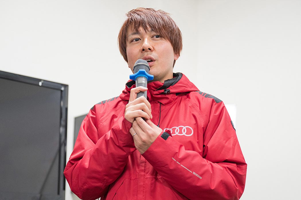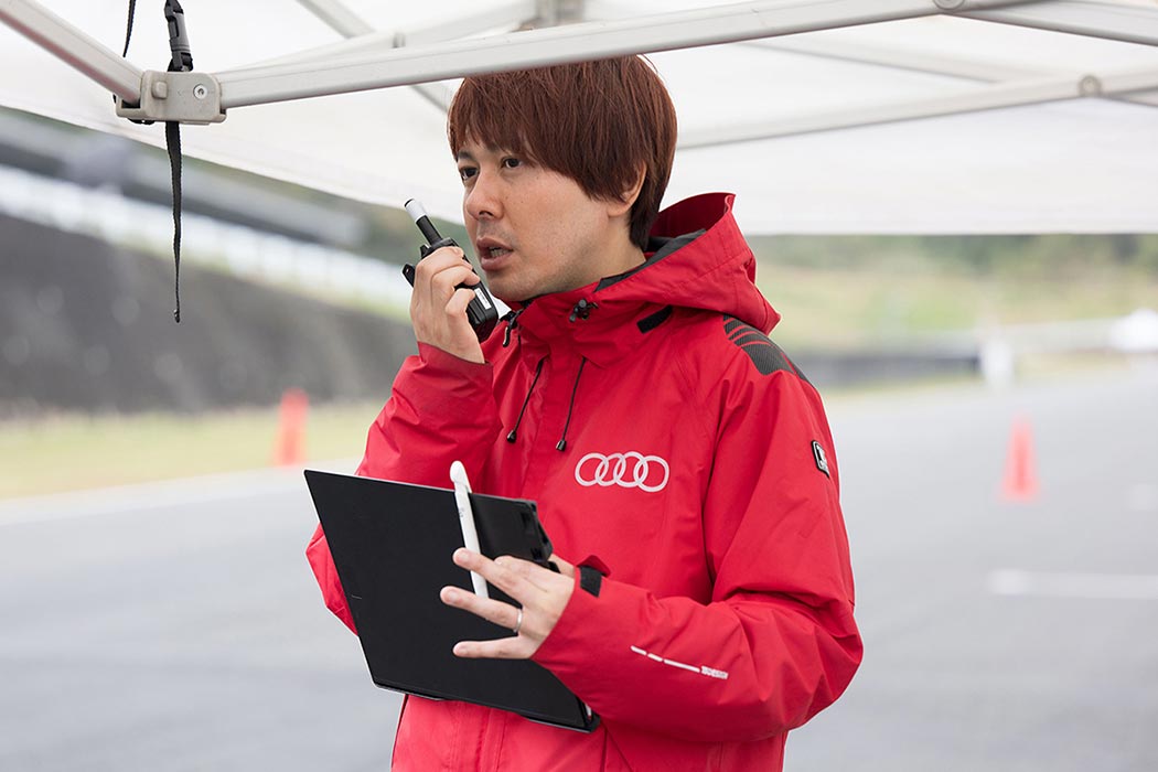 現役レーシングドライバーの富田竜一郎選手と安田裕信選手をインストラクターにむかえ、日常の運転にも活用いただけるスキルを習得できる基礎練習から、インストラクターによる先導走行、フリー走行、そしてタイムアタックと豊富なプログラムをご用意。Audi A1 1.4TFSIをベースにしたレース専用車両「Audi A1 Fun Cup Car」で富士スピードウェイ ショートサーキットを思う存分走行していただきました。