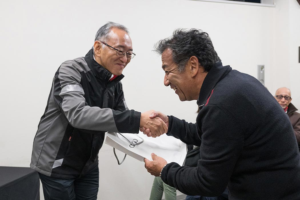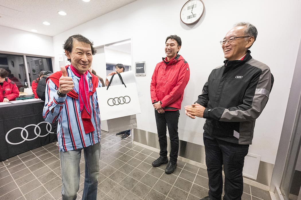 デモ走行後には、Audi A1 Fun Cup Carを囲み、記念撮影を行い、タイムアタックの表彰&修了式を実施しました。上位3名の方を表彰し、Audi オリジナルグッズを贈呈。インストラクターや主催からのコメントでイベントは終了しました。