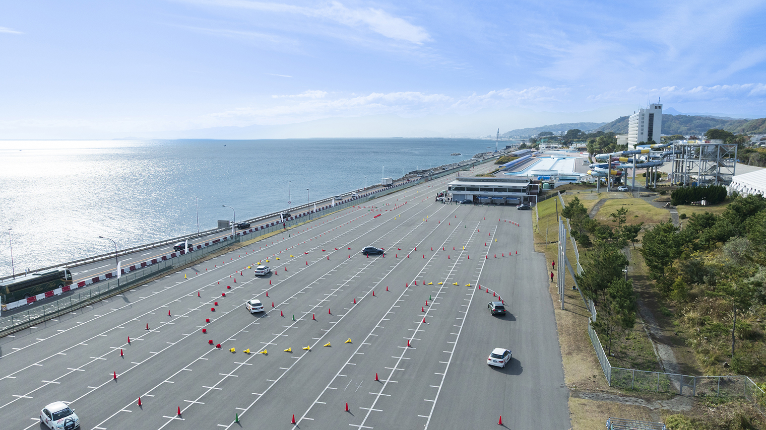 午後は、インストラクターが検証を重ねて考案した、本イベントオリジナルコースをセッティング。午前中に習得していただいたドライビングテクニックを存分に発揮していただけるコースをご用意しました。まずは、インストラクターが運転する先導車に続いて走行いただき、インストラクターが走る走行レーンを見ながら、ブレーキを踏むタイミングやコーナーに入る際の位置や角度をイメージして走行していただきました。