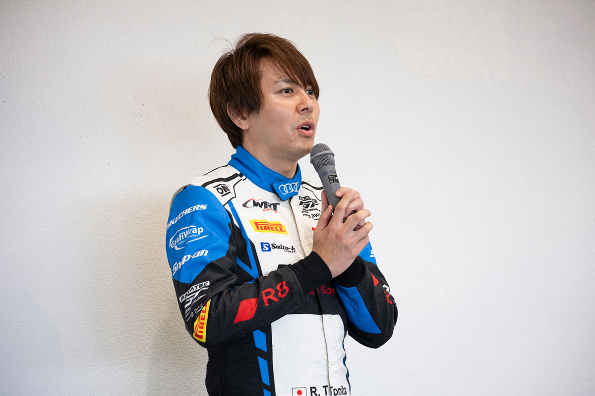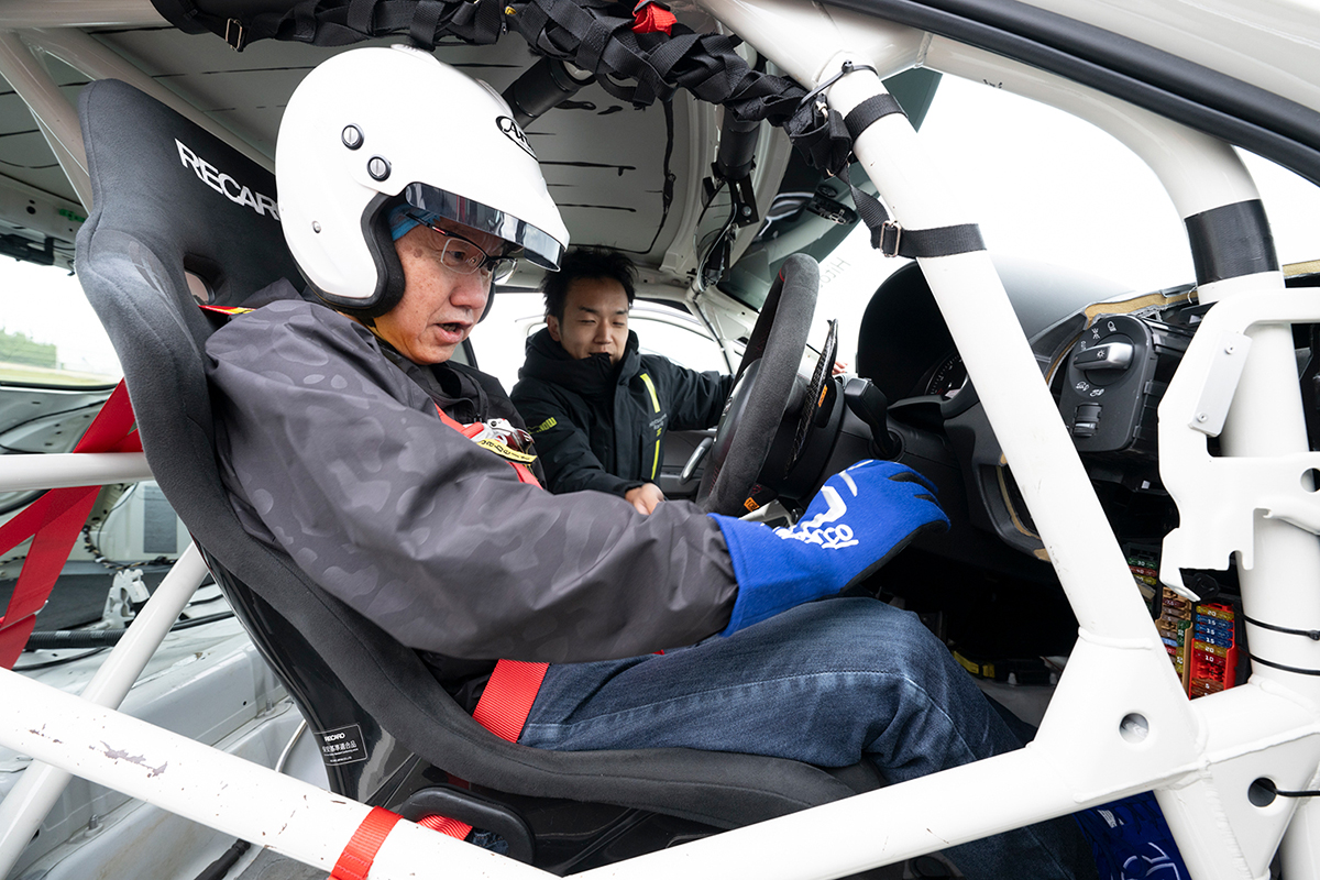 今回は、前回もインストラクターを務めていただいたレーシングドライバーの富田竜一郎選手と安田裕信選手に加え、篠原拓朗選手もインストラクターとしてお越しいただきました。普段お乗りいただけないレーシングカーならではの操作性や走行フィールを、プログラムを通して体感いただきつつ、日常でも役に立つドライブテクニックを習得していただきました。