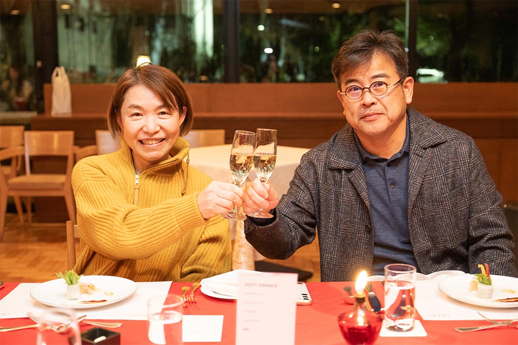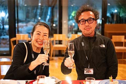 ディナーは、ライトアップされた白樺に囲まれたレストラン会場で信州・蓼科エリアの大自然を感じられる食材を使ったフレンチのコース料理をご用意しました。旬の味覚を長野県産のワインやウィスキーとともにお愉しみいただきました。自然とお客様同士の会話も弾み、1日目は終わりました。