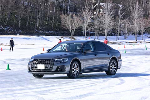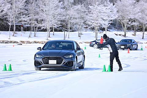 日常生活では体験する機会が少ない凍った路面でのドライビングは、Audiの特性を改めて実感できるほか、旅行先などの雪道でのドライブを愉しめる練習にもなります。