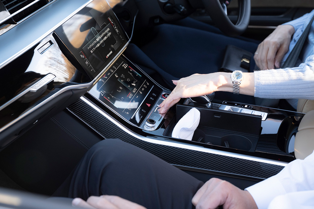 駐車スペースではS8に乗り換え、パークアシストを体験。駐車スペースを感知すると、ステアリングはもちろん、アクセル・ブレーキ、ギアチェンジまでもが自動が動いて駐車を行います。体験した方は全員、「ギリギリまで攻めるなあ!」と感嘆していましたが、目視であればためらってしまうラインもセンサーが正確に判断、迷いのない動きで縦列駐車と車庫入れを遂行します。