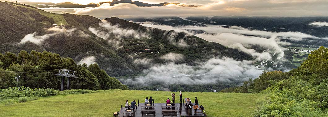 美の女神の名を持つビーナスラインは、その名の通り美しいラインを描きながら、雲の上へと続く日本でも有数のドライブルートです。最高地点の美ヶ原高原は標高2,000m。ヘアピンカーブが重なる道ですが、皆様、速度を保ったままの小気味よいハンドル捌きが見事でした。終点の美ヶ原高原では雨もやみ、風が霧を吹き払って雲海の間から北アルプス、浅間山、南アルプス連邦を一望できました。眼下をゆっくりと雲が流れていく幻想的な景色が、この小さな旅の締めくくりです。