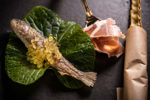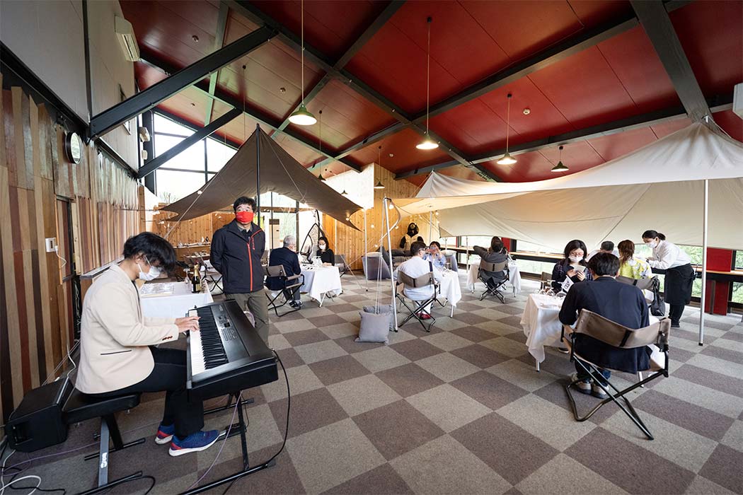 ディナーは信州・長野の食材を使い、1品ずつ信州産のワインとペアリングしたコース料理。星付きレストランで腕を磨いた新進気鋭のシェフによる料理は、意外性に溢れ、豊かな色彩、香り、舌触り、膨らみのある余韻など、ひと皿ごとに感覚が刺激されます。
