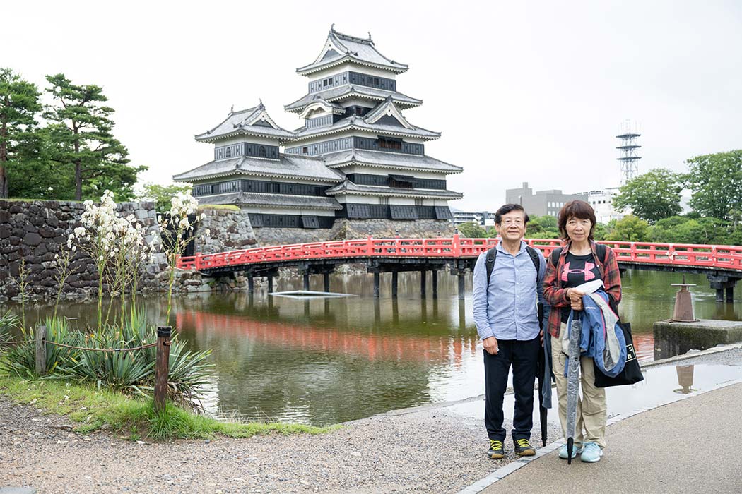 初日はいうなれば肩慣らし。2日目の今日は、いっそう楽しくタフなコース設定になっています。高原を後にし、一路松本城へ向けて山道を下りました。五重六階の天守が現存する日本最古の松本城は、黒と白のコントラストが美しい国宝です。ここで車チェンジを行い、昼食を挟んで、いよいよ険しい山道を走るコースに入ります。