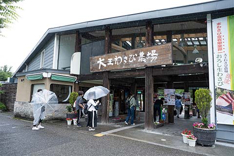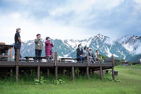休憩場所である「安曇野わさび田湧水群」は、環境省の“景観が素晴らしい名水部門”で堂々の1位に輝く名所。北アルプスの雪解け水が伏流水となって豊富に湧き出る、のどかな日本の原風景をしばし散策して体を伸ばした後、車をチェンジして宿泊地である白馬へ向かいます。