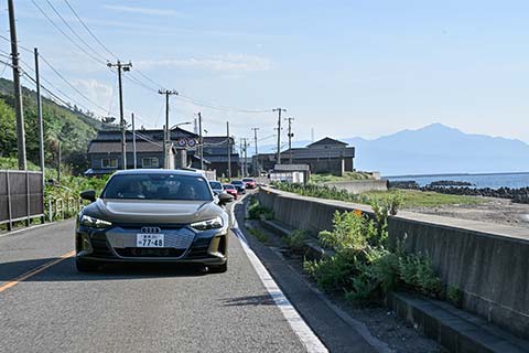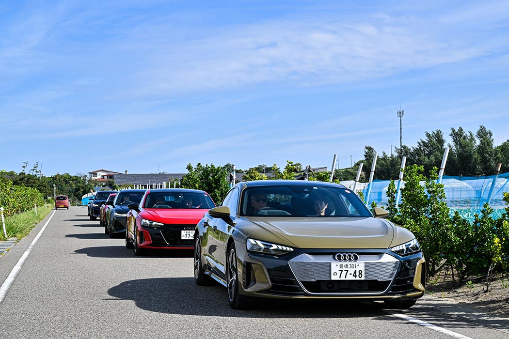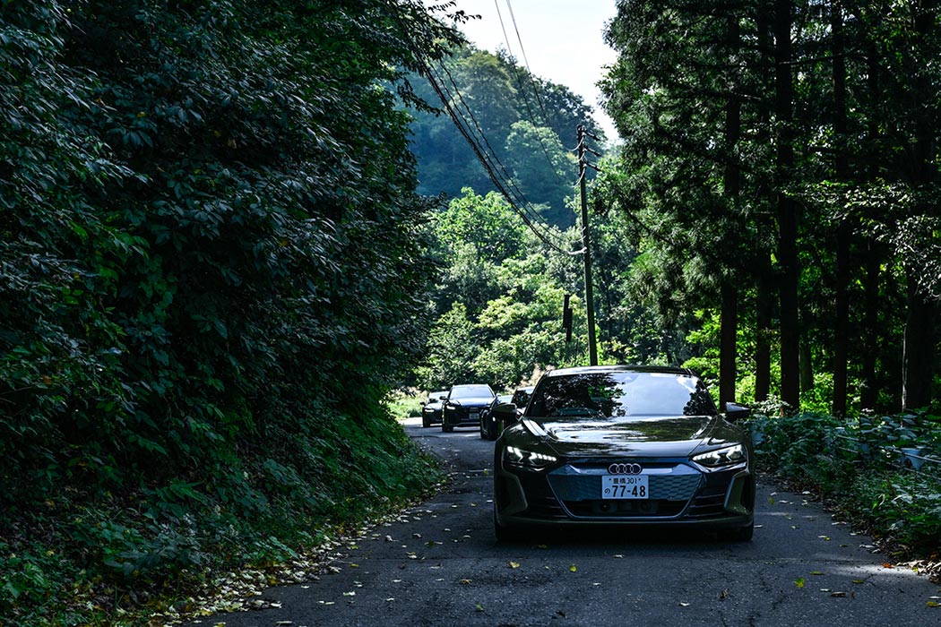 続く弥彦山スカイラインではワインディングロードを存分に攻めていただきました。e-tronの静かながら力強いリニアな加速とコーナーでの抜群の安定感に改めて驚く方が多かったようです。