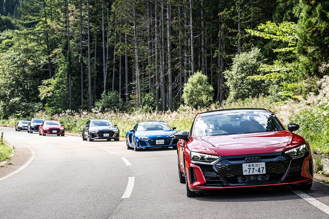毎回ご好評をいただいているツーリングイベント「Audi Grand Tour」、2022年は晩夏の新潟へワイナリーを訪ねる小旅行を企画しました。ラグジュアリーで特別な体験を提供するのは、オーベルジュ「TRANVIGNE(トラヴィーニュ)」。今回ご試乗いただくのはRS e-tron GT/e-tron GT/R8 Coupe/RS6 Avant/RS7 Sportback/ RSQ8の6台。ハイパフォーマンスが約束されたモデルばかりを揃えました。ハードな山道を存分に攻め、ワインに合わせて組み立てられたフルコースに舌鼓を打ち、心地よく疲れた体を天然温泉で癒す――都会の喧騒を離れた小旅行の始まりです。