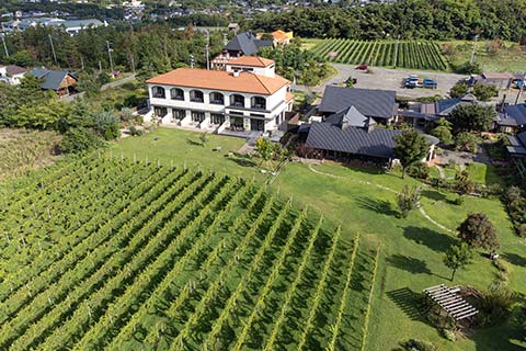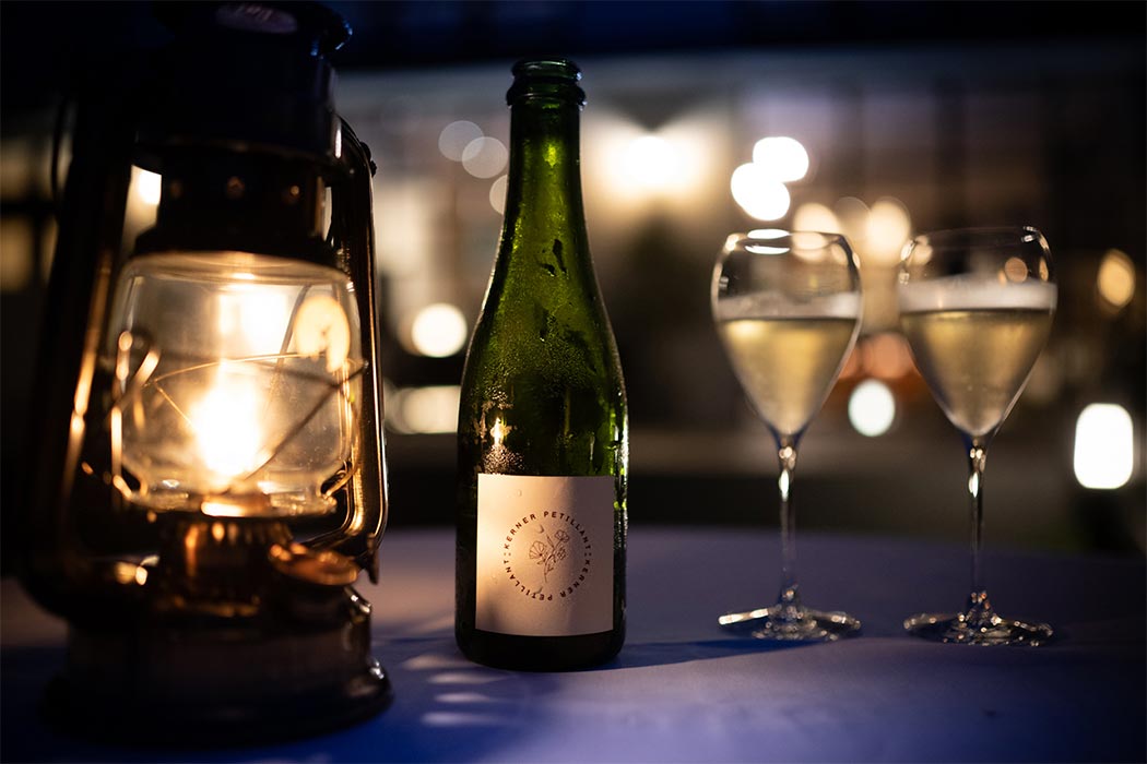 今夜の目的地は角田山のふもと、一面に広がるぶどう畑の中に佇む「ワイナリーステイ トラヴィーニュ」です。角田浜の砂地と風に育まれたぶどうは、華やかな香りと繊細な味わいが特徴ですが、それを活かしつつ醸造されたカーブドッチワインは、風土を体現する唯一のワイン。当然ながら新潟産の食材とのマリアージュは最高です。