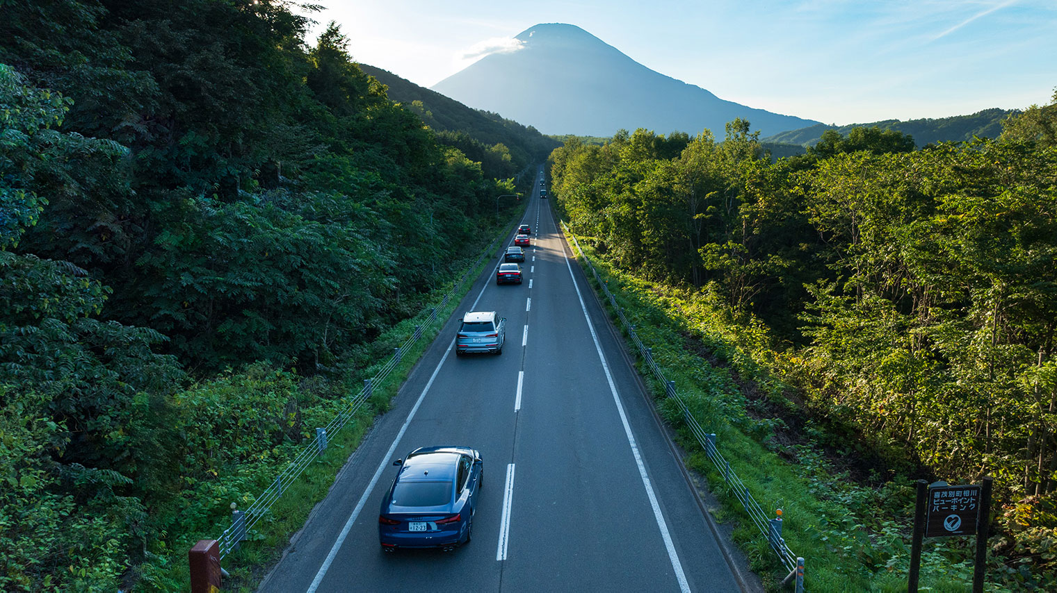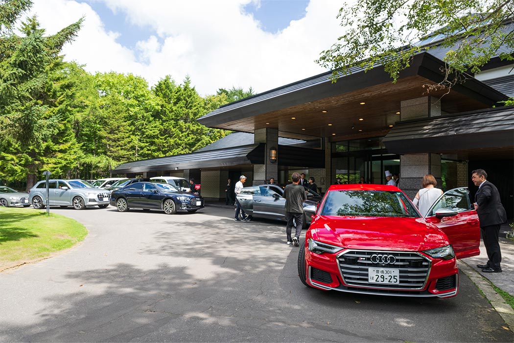 2日間でAudi S4 Avant・Audi S5 Coupé・Audi S7 Sportback・Audi SQ7・Audi S8・Audi SQ8 Sportback e-tronの「S」モデルを乗り継ぎ、各モデルの特徴を存分に体感いただけるバラエティに富んだ、そして北海道ならではの雄大な景色をお楽しみいただけるコースをご用意。宿泊地は、多くの北海道産の木々のぬくもりを感じるお部屋と、北海道の食材をふんだんに使用し、料理人がこだわりをもって旬の食材を提供する北海道・ニセコ羊蹄の宿「楽 水山」にご宿泊いただきました。