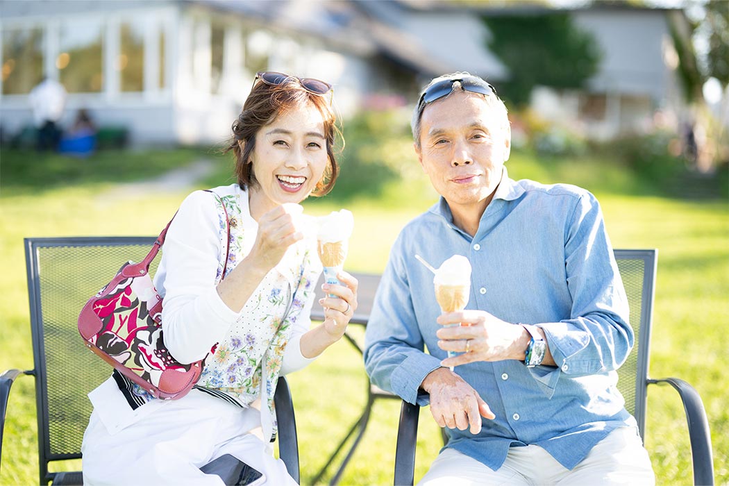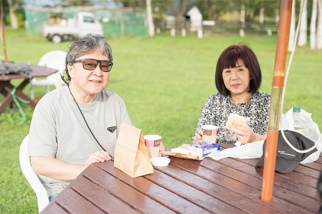 到着時、Sモデルについて、お客様から「日常使いから高速、ワインディング、どんな道でも乗り心地が良くて、バランスの良いモデル」という嬉しいお言葉いただきました。レークヒルファームでは、知る人ぞ知る絶品スイーツのミルクパイを開放感溢れる草原の上でお召し上がりいただきました。