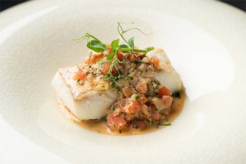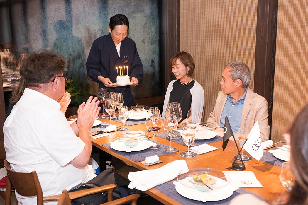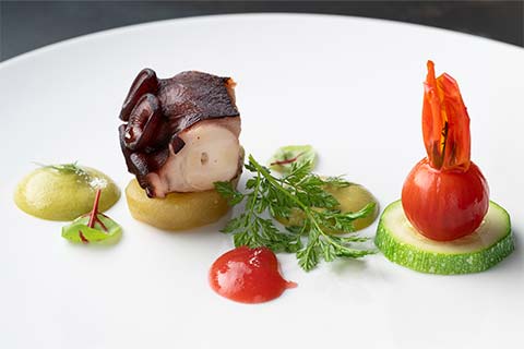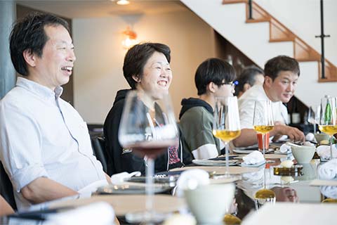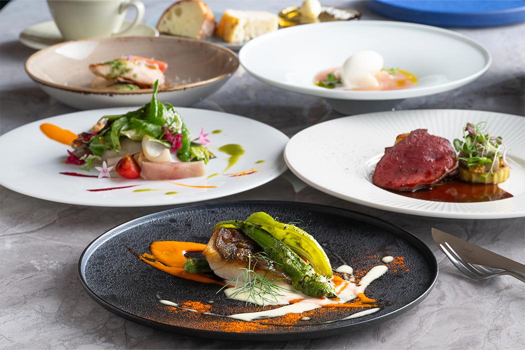 全室から壮大な羊蹄山を眺めながら寛ぐことができる「楽 水山」。ディナーは、生産者から直に仕入れた後志地域を中心に各地から厳選した食材と真摯に向き合い、料理人が季節毎に最も美味しく旬を活かし、素材の生まれ持った魅力と滋味に富んだ創作フレンチをお召し上がりいただきました。