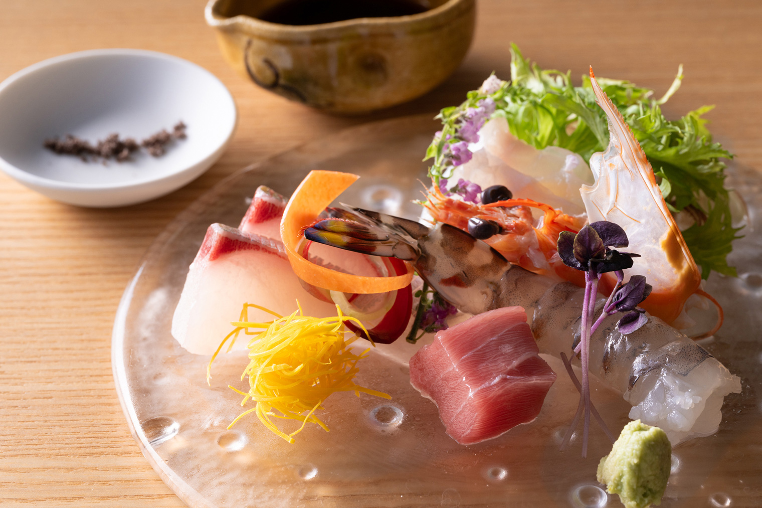 ディナーは、目に映る美しさと、余韻の中に発見のある深い味わいが魅力の日本料理。静寂な空間のなかで、旬の食材を活かし、地域に受け継がれた和の食文化に触れることのできる特別なお食事をお召し上がりいただきました。食事のクオリティもさることながら、一流のソムリエによる食事に合わせた愛媛県の個性豊かな地酒とのペアリングもお愉しみいただきました。