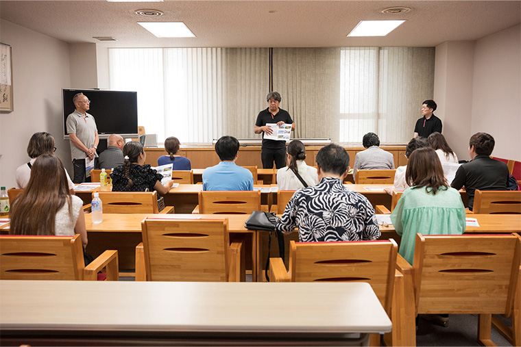次の目的地は歴史的建築のまち並みと独自の文化があふれる大洲城下町にある「NIPPONIA HOTEL 大洲 城下町」へ向かいました。地産地消をテーマに、地元の食材や名産を取り入れ、フレンチの技術をベースにした食材本来の味を引き出すことを追求したランチを堪能いただきました。