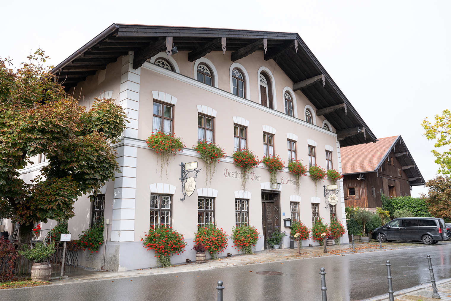 看板には、1928年までここに郵便局があったことを示す「zur Post(郵便局にて)」の文字が刻まれていました。