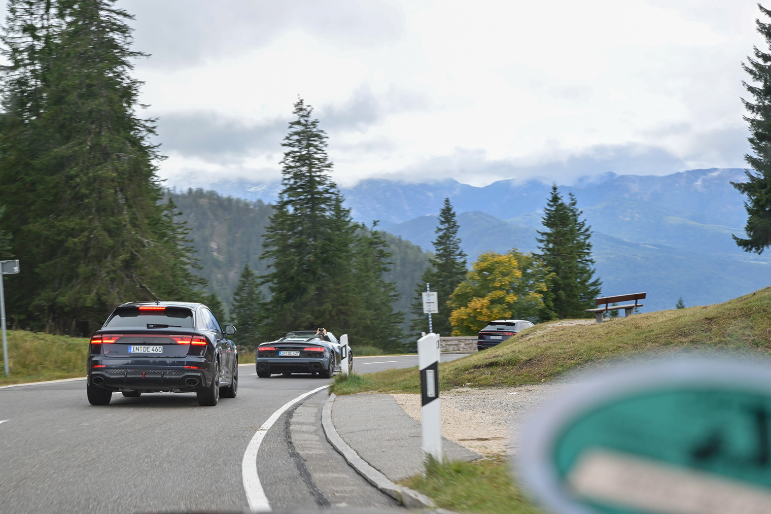 この日はあいにくの雨で、絶景ルートを楽しむには残念な天候でした。しかし、そんな日だからこそ、クワトロの性能が存分に発揮される瞬間でもあります。Audiの走行性能を体感する絶好のチャンスです。